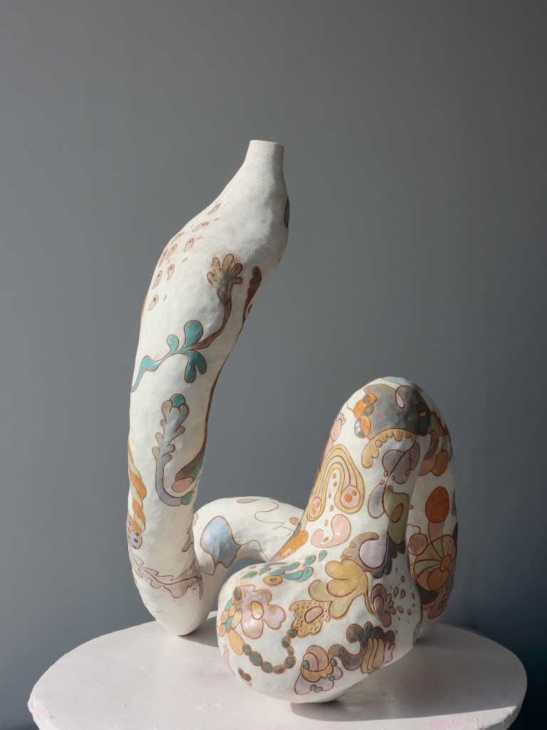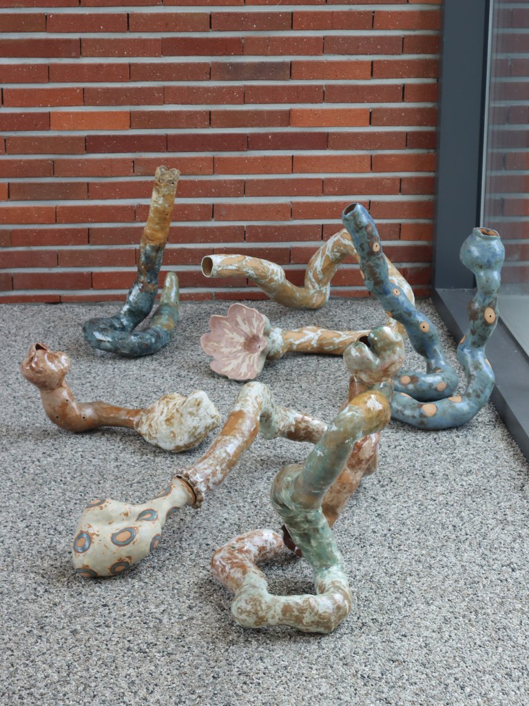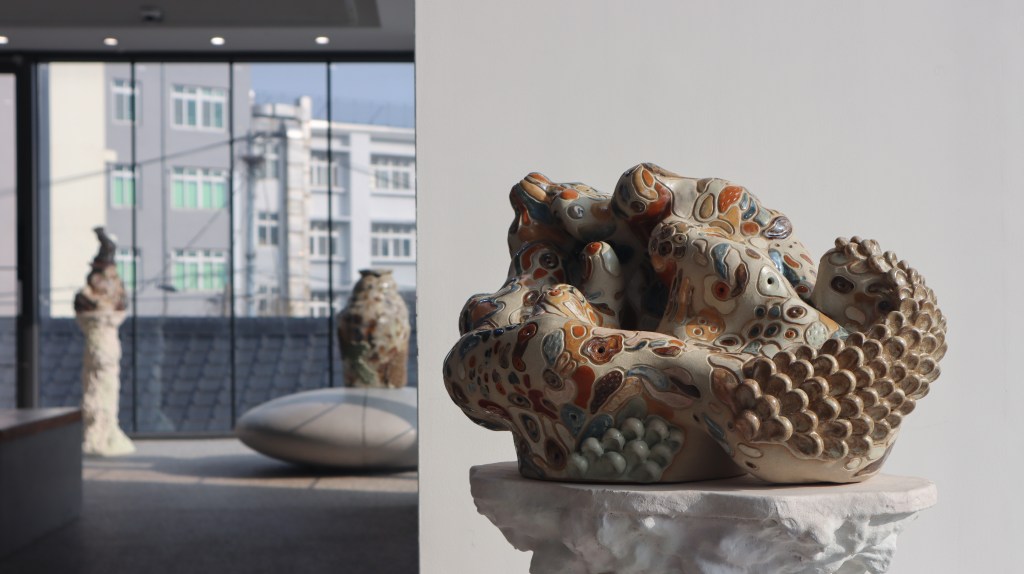 작업의 중심축인 ‘식물적인 몸’은 공간의 여러 면에서 다양한 포즈를 취하며 피어나는 유기적 구조물과 조합된 도자작업을 통해 구현된다. 특히 흙이라는 물질적 토대 위에 더해진 비물질적 사운드는 관람객의 신체적 감각을 자극한다. 살아있는 유기체적 몸과 식물의 접점을 탐구하는 과정을 통해, 우리가 잊고 지낸 공생의 감각과 내면의 유연한 회복력을 대면하는 자리가 될 것이다.